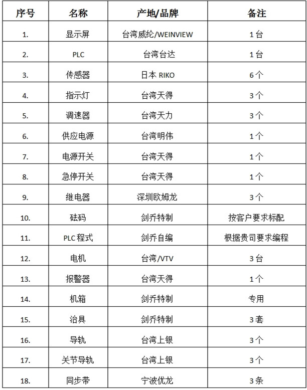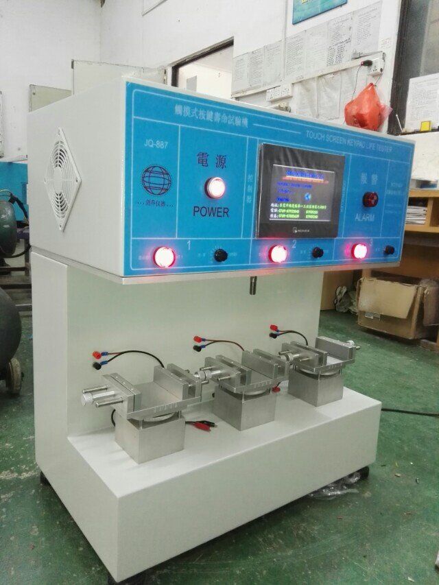 本機機械結構:采用臺灣變頻調(diào)速電機凸輪結構配合日本THK精密線性滑軌完成線性上下動作,電器控制部分:采用臺灣威倫觸摸屏+臺灣臺達控制器(PLC).可對計算機、手機、記事本、鍵盤等小型消費電子產(chǎn)品做壽命測試及開關好壞測試。