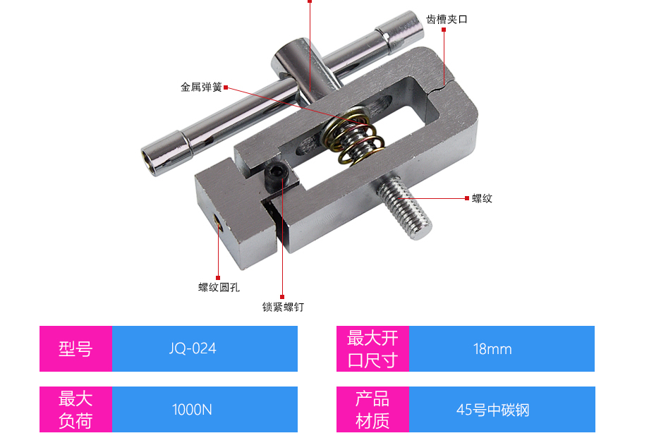產(chǎn)品型號(hào):JQ-024 品牌:劍 喬 用途:電纜線夾具適用范圍:橡膠、各種線纜、紙、各種電器元件、塑料薄膜等材料的拉力,破壞力測(cè)試。