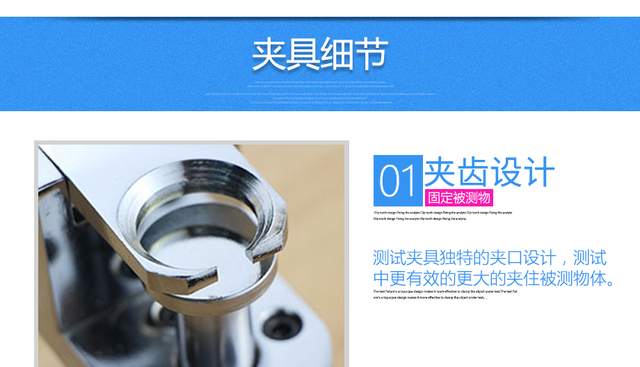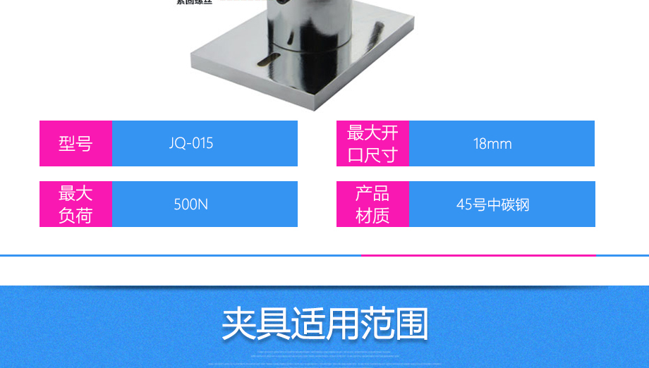 產(chǎn)品型號(hào):JQ-015 品牌:劍 喬 用途:紐扣夾具適用范圍:紐扣、玩具等材料的拉力,破壞力測試。