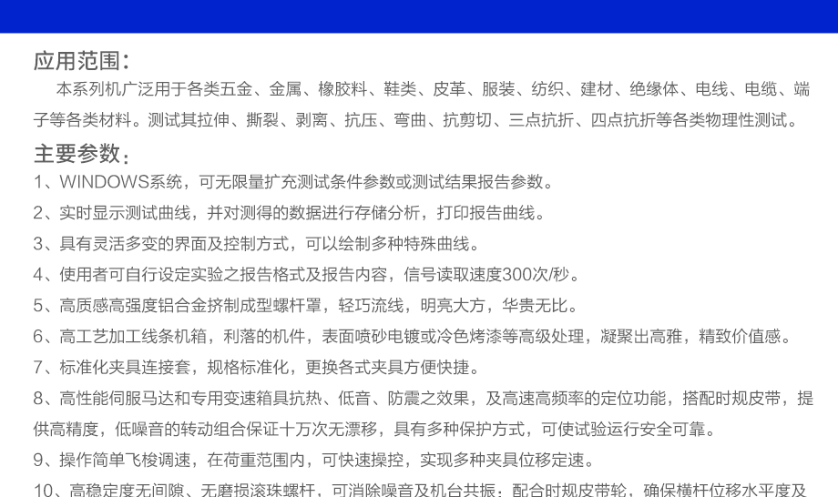 產(chǎn)品型號:JQ-998(高端定制款) 品牌:劍 喬 用途:高端雙柱拉力機(jī)主要測試原物料、成品、半成品的物理特性,可做抗拉力測試、抗壓力測試、抗彎測試,取得伸長量、伸長率、應(yīng)力、應(yīng)變等測試結(jié)果及測試資料。